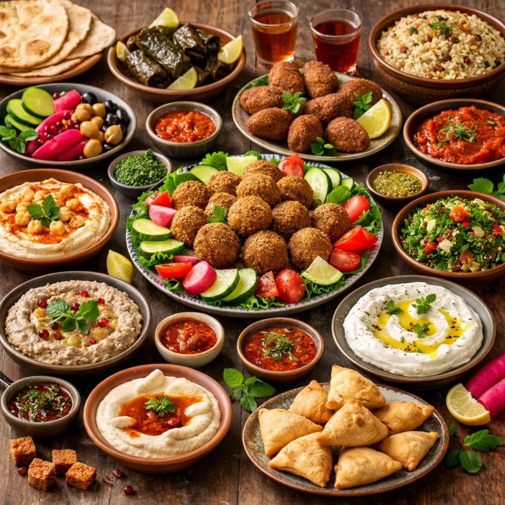 Entre os pratos mais comuns do mezze estão: